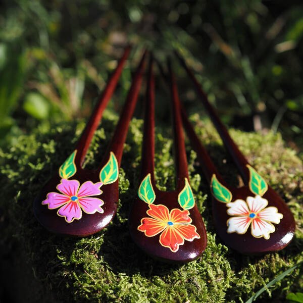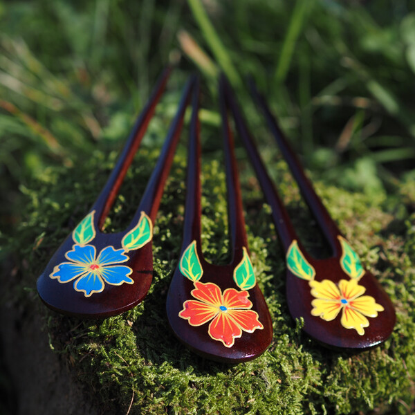 A unique hair accessory from the exotic island of Bali, handcrafted by local artisans. Each piece is unique in its details and in the flower design, which is inspired by the Indonesian flora.