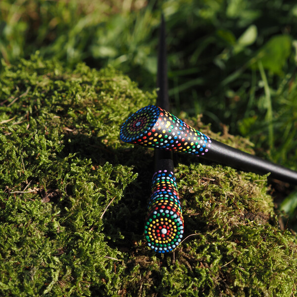 The high-quality processed wood will please every natural materials lover. Wooden hair accessories do not disrupt hair structure, have antistatic properties, and prevent breakage and damage. However, it is not recommended to expose them to moisture or use them on wet hair. It is recommended to occasionally treat the hairpin with a standard hand cream or a drop of olive oil to maintain its condition and restore its shine.