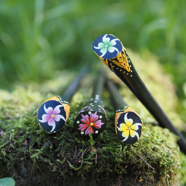 The high-quality processed wood will please every natural materials lover. Wooden hair accessories do not disrupt hair structure, have antistatic properties, and prevent breakage and damage. However, it is not recommended to expose them to moisture or use them on wet hair. It is recommended to occasionally treat the hairpin with a standard hand cream or a drop of olive oil to maintain its condition and restore its shine.