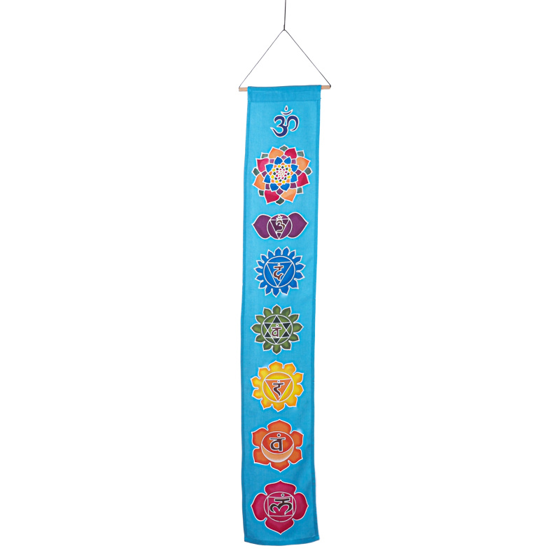 Decorative curtain with the motif of all chakras and the symbol of Om on the top, originating from the Indonesian island of Bali, shines with bright colours and brings a strong whiff of positive energy into any interior. It brings harmony and balance by representing the connection between the chakras – from the root to the crown.