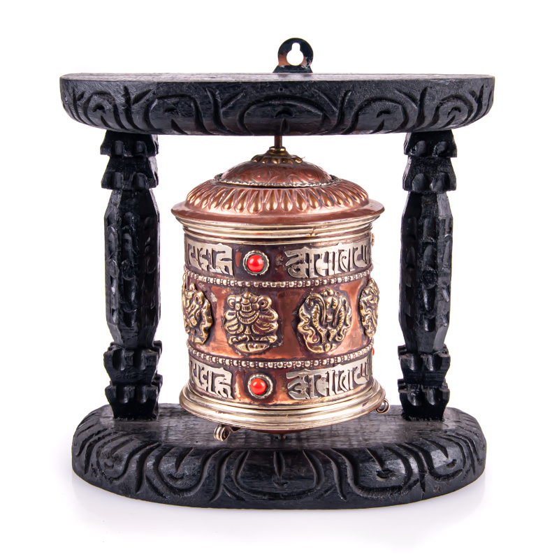 Follow the slowly turning Dharma wheel, repeat the mantra Om mani padme hum several times, and feel the influx of good karma...