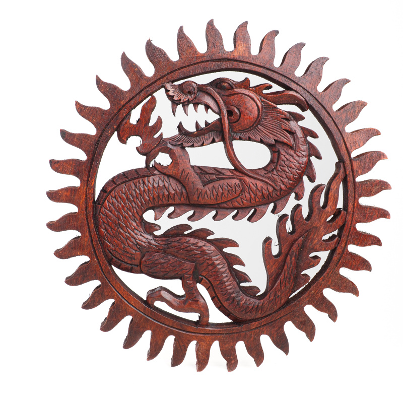 Product description Hanging Wooden Decoration Dragon Circle 30 cm Brown