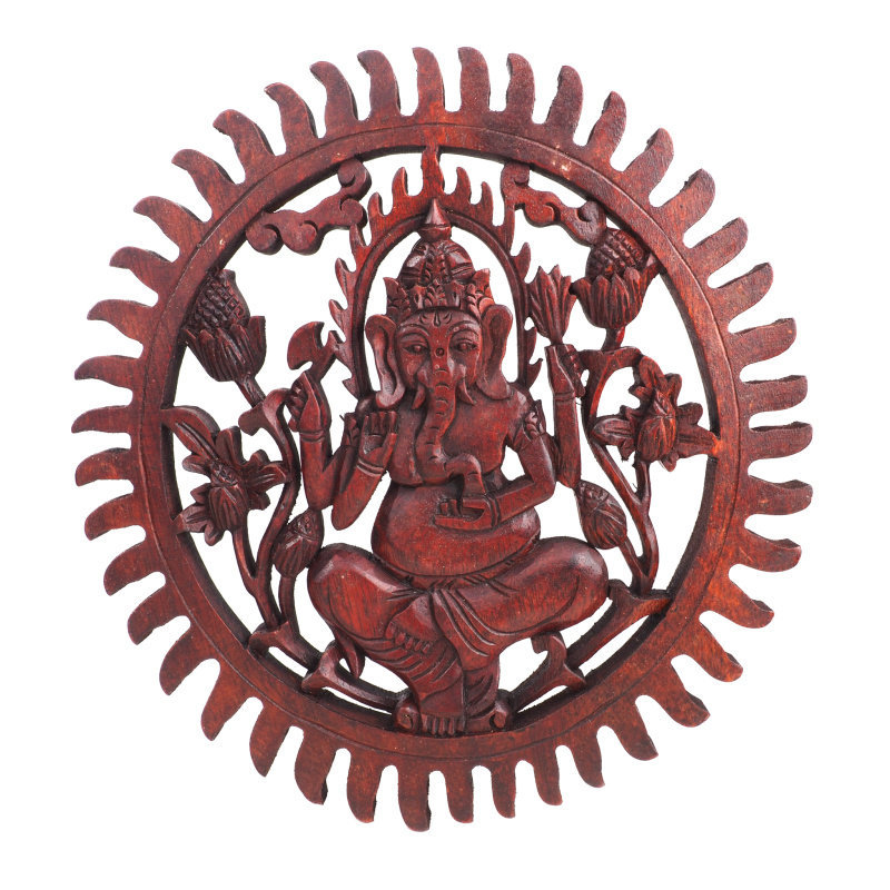 Product description Hanging Wooden Decoration Ganesha Circle 30 cm Brown