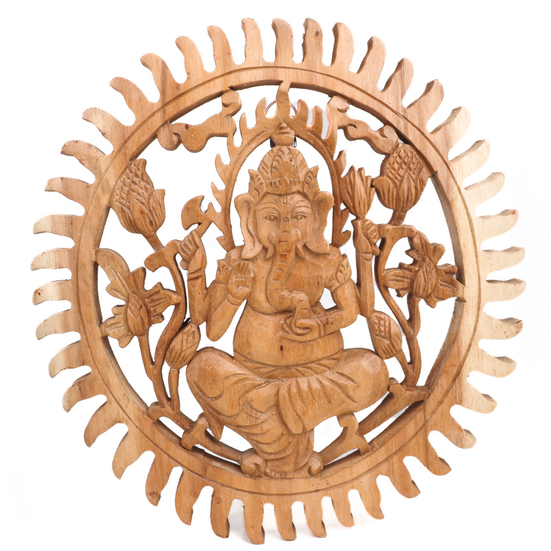 Product description Hanging Wooden Decoration Ganesha Circle 30 cm Natural