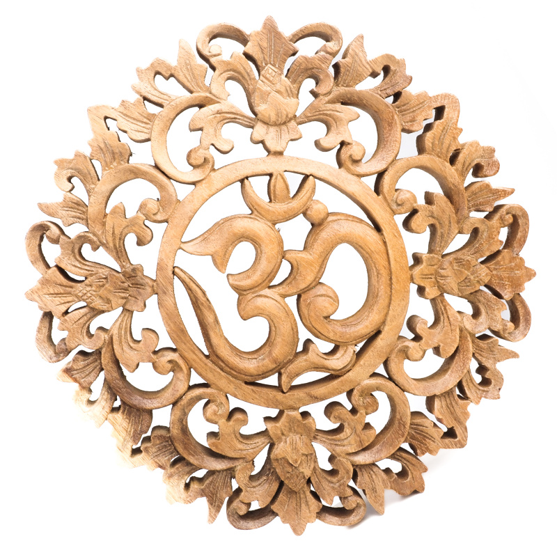 Product description Hanging Wooden Decoration Om Decorated Circle 30 cm Natural