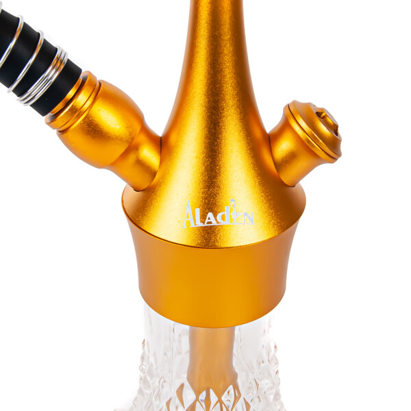 Aluminium hookahs have gained a large number of fans in recent years. Compared to stainless steel, aluminium hookahs are cheaper, lighter and the anodised coating gives the body of the hookah an impressive appearance. The same applies to the Alux 380 hookah from the well-known brand Aladin.