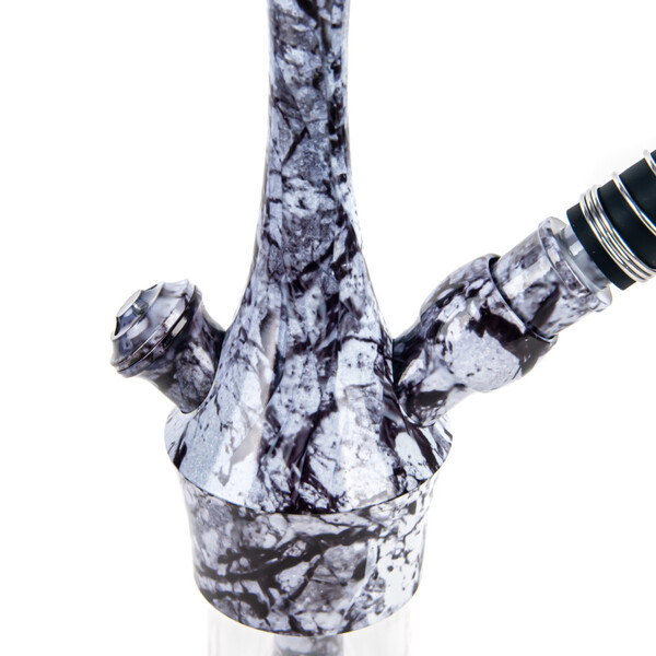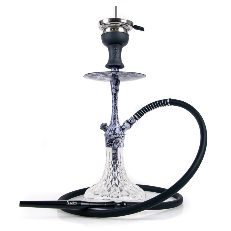 The Aladin Alux 380 is a single-handle hookah, which includes a silicone hose with mouthpiece, a ceramic bowl with badcha and a tongs. The body and the base are connected by the Click bayonet system, which makes the hookah easier to assemble and disassemble. The downstem (downpipe) is fitted with an adjustable diffuser, allowing you to quiet the gurgle and soften the draw.