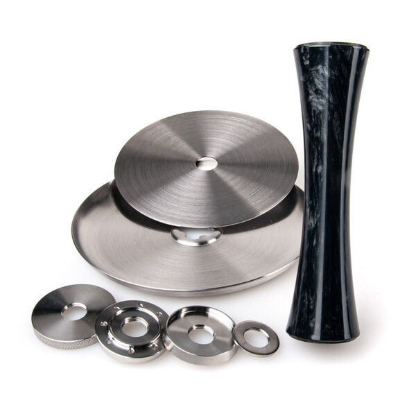 The most interesting part, however, is the set of stainless steel rings that, along with the sleek epoxy resin sleeve and two differently sized plates, allow for nine different blow-off valve options!