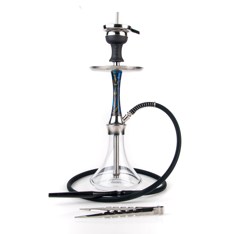 The body of the Aladin Epox 460 is made of high-quality polished stainless steel and decorated with a stylish epoxy sleeve. The body is connected to the base by an internal thread. The hookah uses a "cut" connector to connect the hose, which eliminates the need to use a silicone gasket for connecting. The adjustable diffuser allows the user to adjust the hookah's draw to their liking.