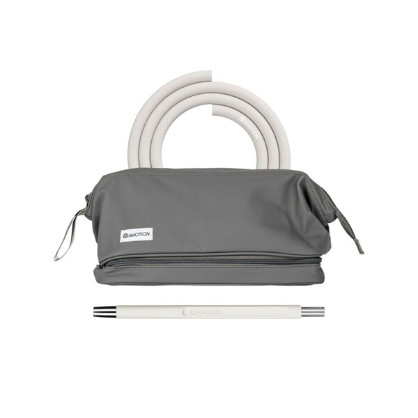 With its height of only sixteen centimeters and its handy carrying case, the Amotion Roam can accompany you wherever you go. It is made from high quality V2A stainless steel and it features a soft touch surface that is both nicely grippy and dirt-repellent. A magnetic lid makes the handling easy, and a handy thread on the bottom side of the hookah for attaching the Amotion Roam Spike allows you to stick the hookah in the ground even on uneven surfaces like in the woods or on the beach. For maximum stability, the hose connection is located at the bottom of the hookah.