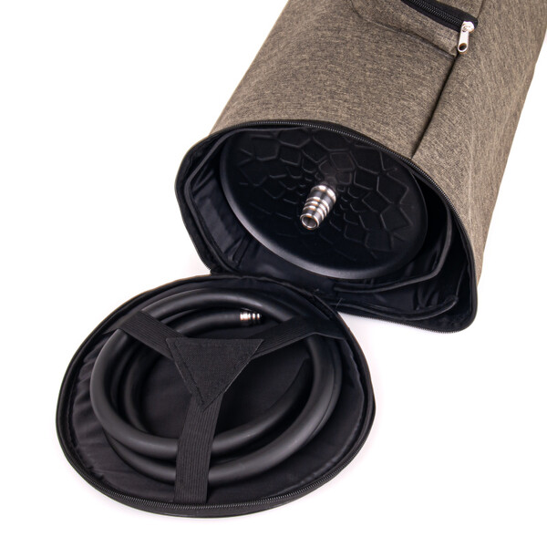 br>Don't worry about your pipe on the road, the sturdy padded liner will keep it safe, while the saucer and hose attach securely to the lid of the bag. The Zippered side pocket will help you store your other accessories. The removable liner is great not only for protecting your pipe from impact, but also as a picnic mat, so cheers to the outdoors!