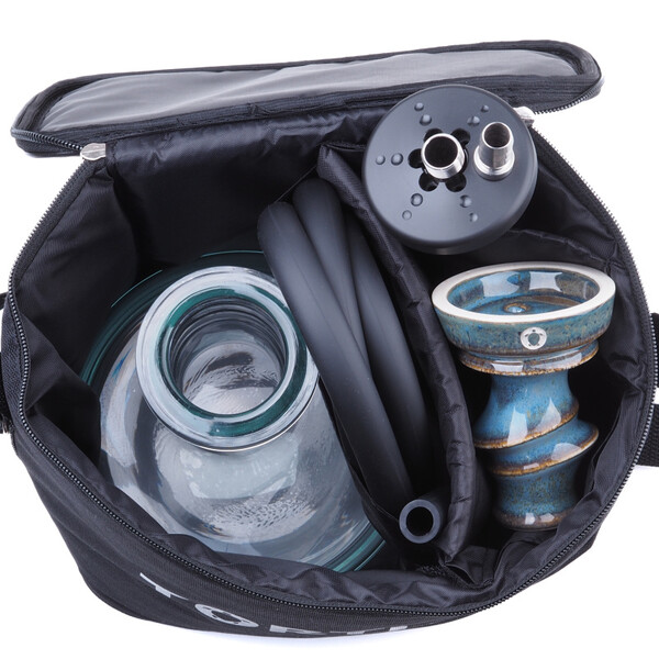 Customized shisha bag? The Tortuga Mini shisha bag is tailor-made for Tortuga hookahs. allowing you to pack them away comfortably. Inside, you will find one pocket, perfect for storing your bowl, and a divided compartment for your base, stem, and other accessories.