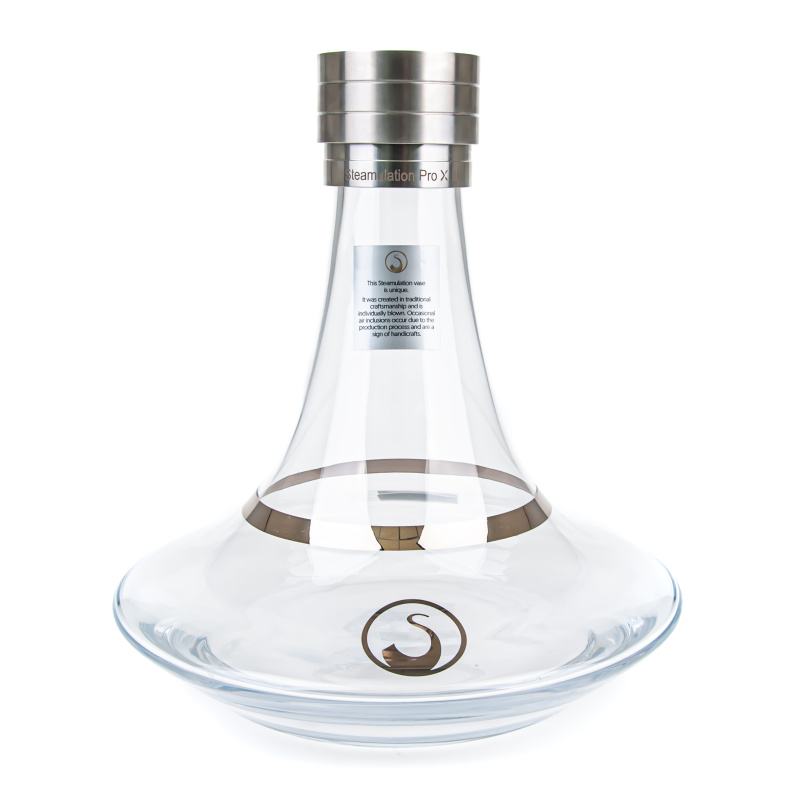 Hand blown crystal glass replacement base with SteamClick 360 thread for Steamulation Pro X III hookahs.