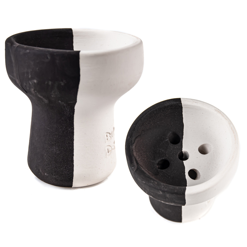 Russian manufacturer of hookah bowls Bun Dem bets on simplicity and quality. It uses white clay with high heat resistance. The thick-walled bowls thus promise excellent thermal properties. Among other thick-walled bowls, the Bun Den Nuttah impresses with its small but massive shape and typical black and white design.