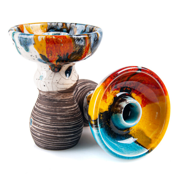 When they do something hookah-related in Russia, it usually gets an A-star rating. Whether it's the Soft Smoke and Nube Unique brands of hookahs, for example, or now Kolos handmade bowls. These are definitely one of the best designed bowls on the hookah market. They are adorned with abstract paintings that wouldn't put even the great 20th century expressionist painter Jackson Pollock to shame. The fascinating combination of colours is made even more unique by the fact that the bowls are not mass-produced. Thus, each variant of the plethora of variations has only a few identical pieces.
