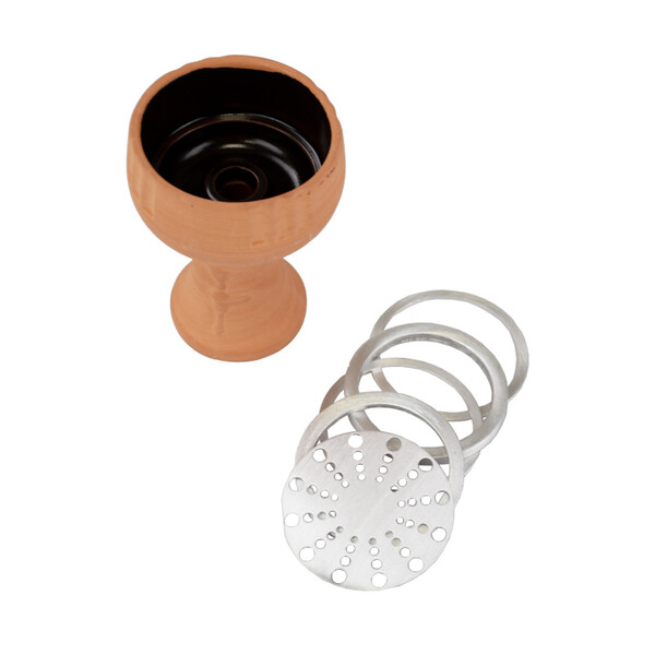 An unconventional concept of this bowl from the well-known brand Aladin allows adjusting the size with 1-4 additional rings and thus reducing the capacity of the bowl. If you want to use a smaller amount of tobacco, just stack the rings on each other and then place the strainer on top of them, preventing the molasses from flowing into the hookah stem. It's up to you how much tobacco space you will use.