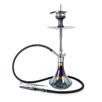 The travel version of the Ukrainian Embery Mono hookah labeled Mini, is the ideal travel buddy. It has the same good performance as its larger cousins and a handy compact size. The smaller size of the Embery Mini does not prevent it from attracting attention to itself with its vibrant neon stem and ingeniously crafted check valve, hidden in the heart of the hookah. Blowing smoke out of the base turns into a spectacular show.