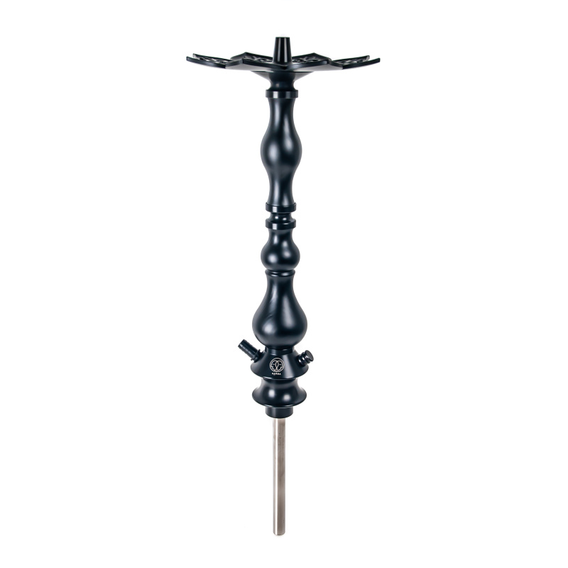 The Karma hookah consists of parts made of different materials. The heart is made of durable polyacetal, the top of the stem and the tray are made of anodized aluminum, the manufacturers used stainless steel for the downstem and the stem got a wooden cover. The hookah can be completely disassembled and each component properly cleaned. The hookah has a very pleasant and light draw.