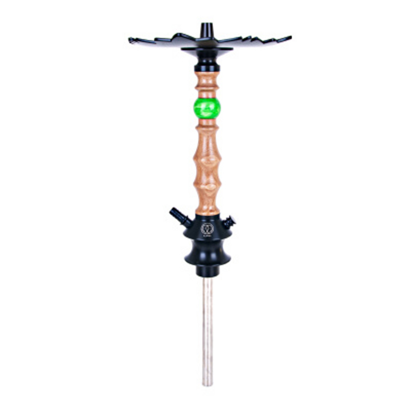 The Karma hookah consists of parts made of different materials. The heart is made of durable polyacetal, the top of the stem and the tray are made of anodized aluminum, the manufacturers used stainless steel for the downstem and the stem got a wooden cover. The hookah can be completely disassembled and each component properly cleaned. The hookah has a very pleasant and light draw.
