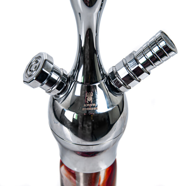 Kaya Brass 480 Click Temptation Hookah with brass body and revolutionary bayonet connection between the body and the hookah base. No endless screwing, no violent pushing, with the Click system you just turn slightly and you're done. Thanks to the high content of copper, the body of the hookah is a little heavier than stainless steel hookahs, but also more resistant to surface imperfections and signs of wear. This makes the Kaya Temptation a loyal companion and one that won't be put to rest right away.