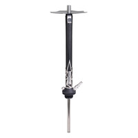 The MVP 460 hookah is milled from a solid piece of stainless steel, which helps for better stability. The hookah won't just topple over even with careless handling. In addition to the glass base, the hookah also comes with a silicone soft touch hose, which has a very pleasant feel. The downstem (bottom tube) is fitted with an adjustable diffuser to soften the draw and reduce the gurgling. The black hose fits with a black aluminium mouthpiece. And on top of the hookah is a deep, classic ceramic bowl.