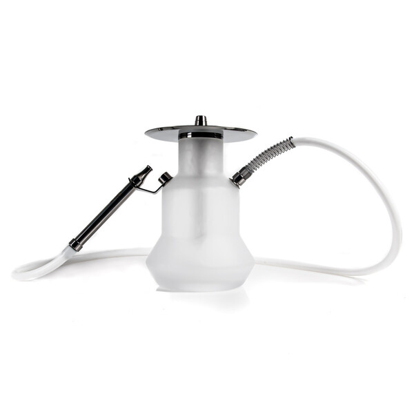 A glass base with a long slender stem coming out of it? No need! The Oduman N4 Turkish Hookah is basically a clear glass base with a pipe that the smoke flows through. The entire "stem" is thus hidden inside the base. This doesn't prevent it from fulfilling its important function of cooling the smoke, while allowing the hookah to remain elegantly simple and packable.