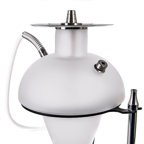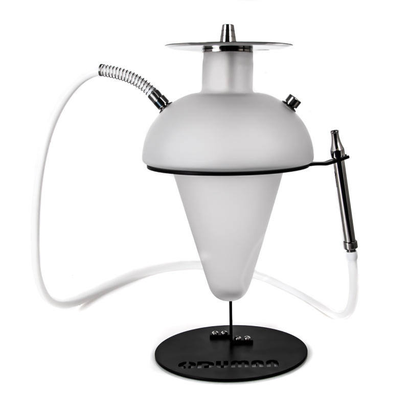 Turkish beauty. The fifth model of the well-known hookah manufacturer Oduman with the N5 label differs from its sisters more than any other. On its own, the glass "en five" cannot stand upright, it is embedded in a metal stand, which is decorated with the manufacturer's logo on the base. The Oduman N5 hookah also includes an LED module running on two AAA batteries, which are inserted into a hole under the base. This allows you to light up the hookah with one of a wide range of colours.