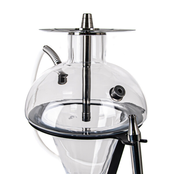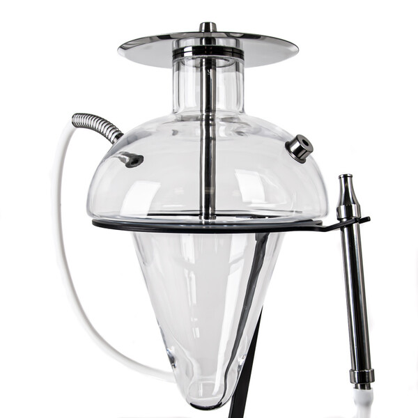 Turkish beauty. The fifth model of the well-known hookah manufacturer Oduman with the N5 label differs from its sisters more than any other. On its own, the glass "en five" cannot stand upright, it is embedded in a metal stand, which is decorated with the manufacturer's logo on the base. The Oduman N5 hookah also includes an LED module running on two AAA batteries, which are inserted into a hole under the base. This allows you to light up the hookah with one of a wide range of colours.