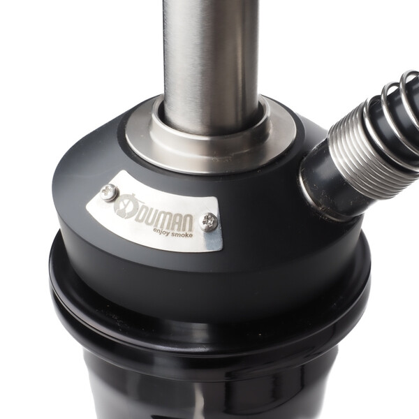 The stem of the hookah is made of high-quality stainless steel, while the heart is made of durable thermoplastic derlin. It is secured in the base with a Russian-style grommet and has a removable diffuser. A top check valve, and an engraved logo on the tray and the plate at the heart of the hookah decorate its appearance.