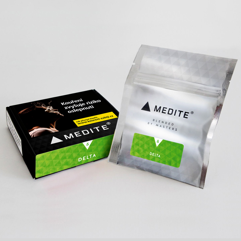 Triangles and letters of the Greek alphabet. The symbols decorating the boxes of the Czech Medite tablet, hiding a bag with fifty grams of exquisite flavour.