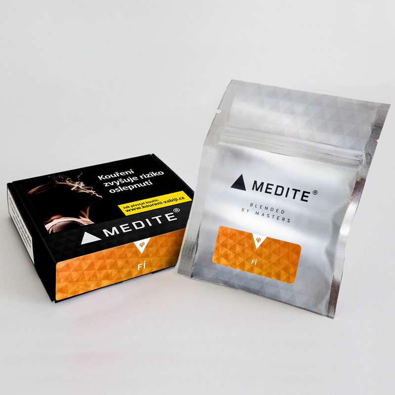 Triangles and letters of the Greek alphabet. The symbols decorating the boxes of the Czech Medite tablet, hiding a pouch with fifty grams of exquisite flavour.