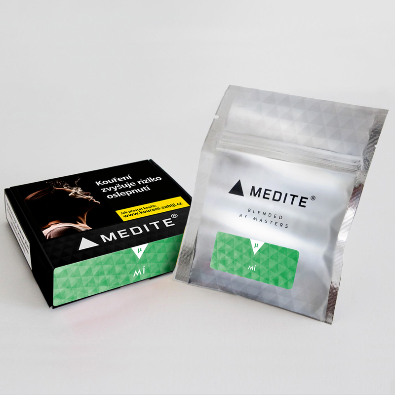 Triangles and letters of the Greek alphabet. The symbols decorating the boxes of the Czech Medite tablet, hiding a pouch with fifty grams of exquisite flavour.