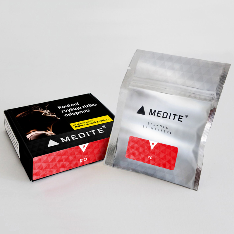 Triangles and letters of the Greek alphabet. The symbols decorating the boxes of the Czech Medite tablet, hiding a bag with fifty grams of exquisite flavour.