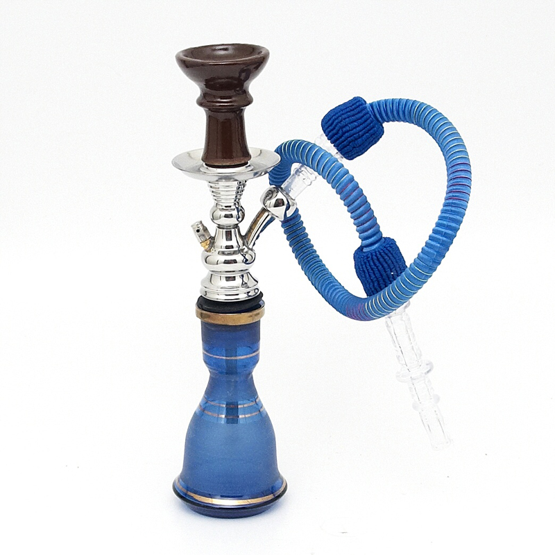 The smallest hookah from Top Mark is suitable as a travel hookah. The hookah has an overall height of 35 cm and is designed for one smoker. For proper function, the hookah is equipped with a safety valve. The tray is a fixed part of the body of the hookah. The colour of the hookah is determined by the colour of the hose and the base. The hookah is packed in its original cardboard box.