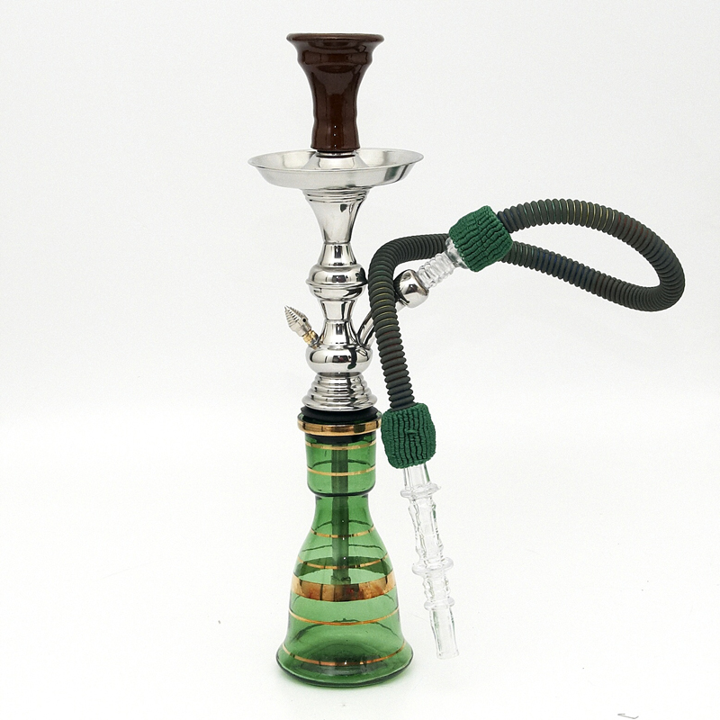 The best-selling hookah from Top Mark in green. The hookah has one hose, so it is designed for one smoker. For proper function, the hookah is equipped with a safety valve, which plays a key role in case you want to connect another hose to the hookah. By replacing the valve with a special attachment (reducer) you get an additional outlet for the hookah. The hookah is 46 cm (18") high and is packed in its original cardboard box together with all accessories included in the price of the hookah.