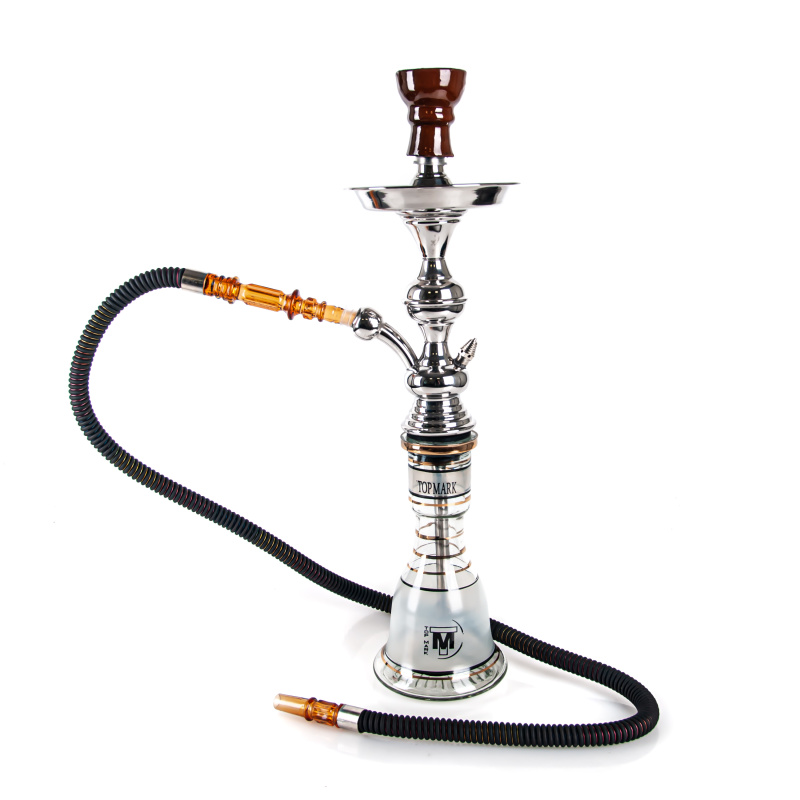 The traditional Egyptian small hookah from manufacturer Top Mark in black is 53 cm high. The colour of the hookah is determined by the colour of the base and hose. The base of the hookah is black without painting, with fancy gold stripes. For proper smoking function, the hookah is equipped with a safety valve that can be easily replaced with a reducer (special attachment) to turn a hookah with one outlet into a hookah with two outlets. The hookah is packaged in the original Top Mark box together with all necessary accessories and assembly instructions.