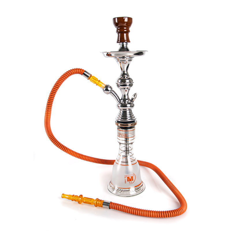 The best-selling Top Mark hookah in orange is designed for one smoker. The colour of the hookah is determined by the colour of the hose and the base of the hookah. The hookah includes a safety valve that ensures the correct functioning of the hookah. The hookah is a single-hose hookah, but by replacing the safety valve with a special attachment (reducer), an additional outlet for the second hose can be obtained. The hookah is 53 cm high and is packed in the original box together with all accessories and instructions for assembling and using the hookah.