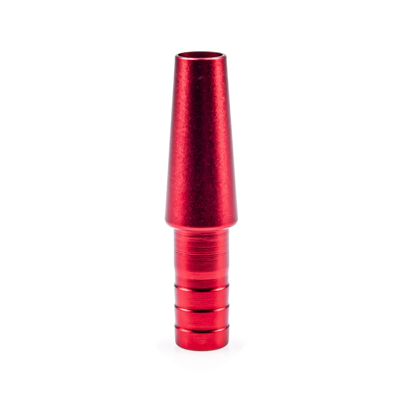 The Aladin metal connector is designed for silicone hoses. The hose fits on a diameter of 1-2 cm. The conical shape of the end designed to fit the hookah stem, along with the grommet (not included in this package), allows it to adapt to the size of the hole and seal it perfectly.