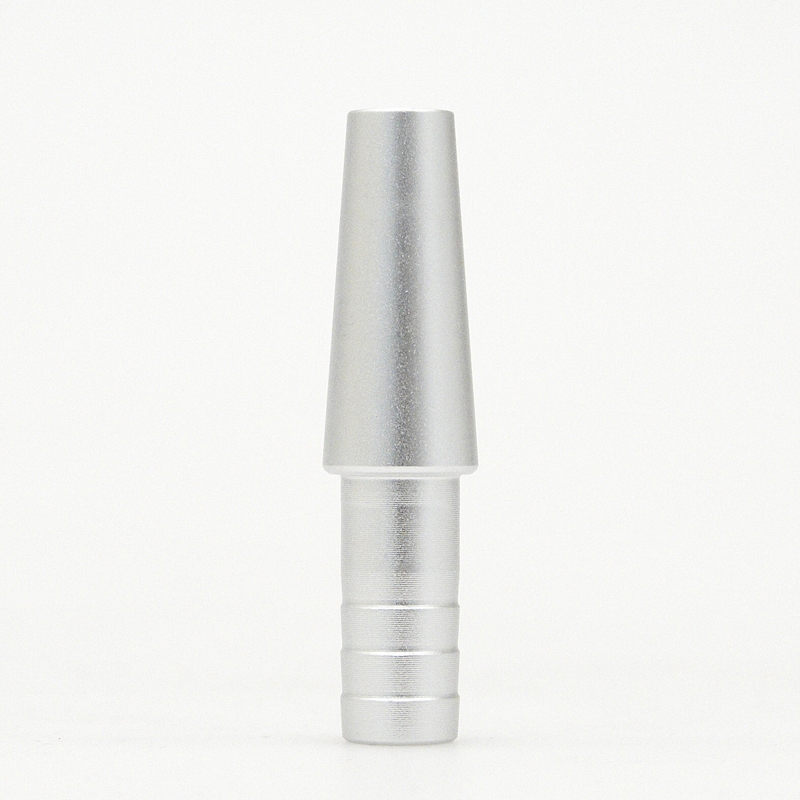 The Aladin metal connector is designed for silicone hoses. The hose fits on a diameter of 1-2 cm. The conical shape of the end designed to fit the hookah stem, along with the grommet (not included in this package), allows it to adapt to the size of the hole and seal it perfectly.