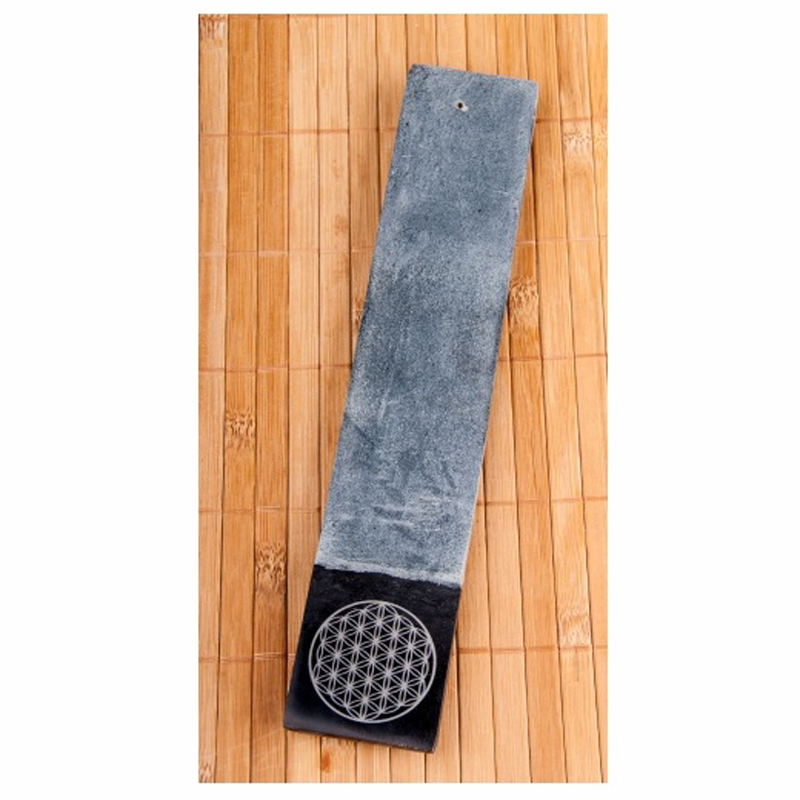 Incense stick holder made from soapstone, printed with the motif of the Flower of Life.