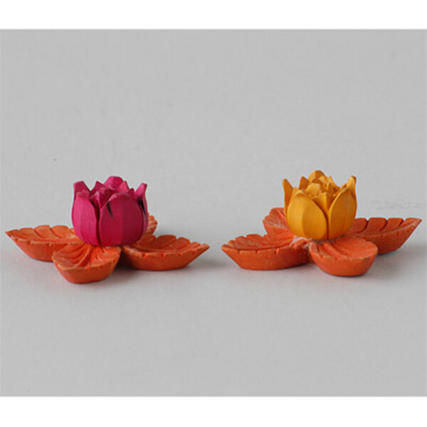 Wooden incense stick holder in the shape of a lotus.