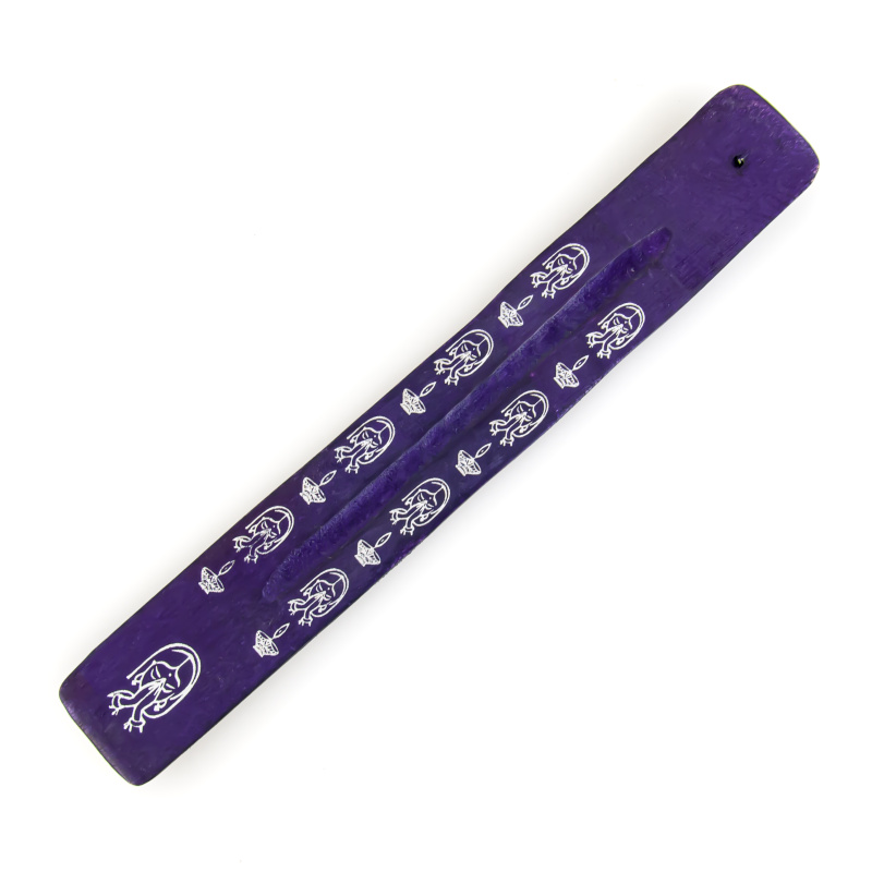 Incense stick holder - Hindu ski dark purple, decorated with printed motifs.