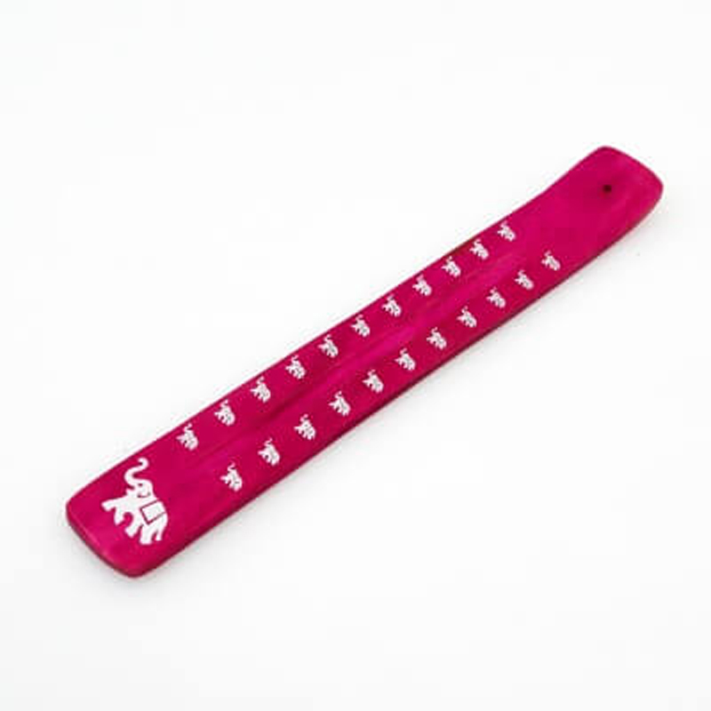Incense stick holder- ski-shaped Manju Elephant, pink, decorated with printed motifs.