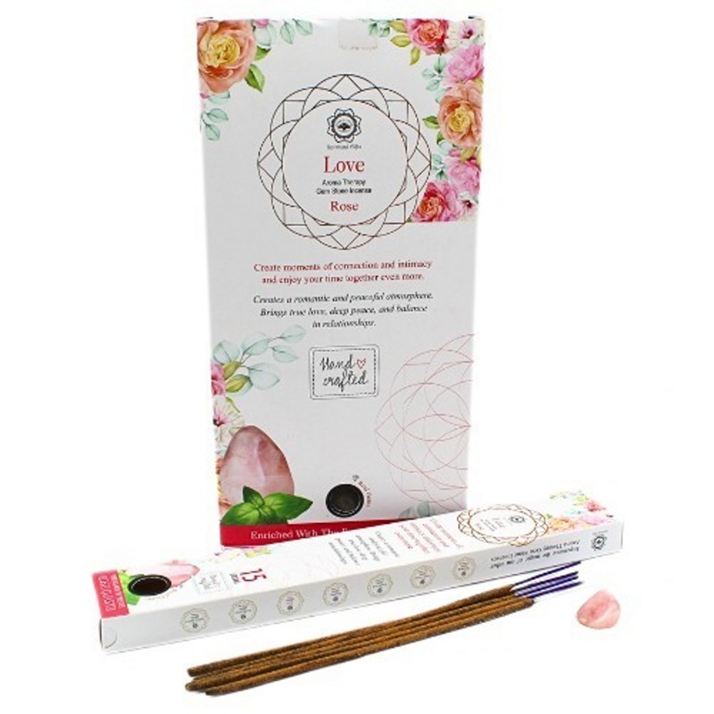 Incense Sticks Green Tree Gemstone Love - Rose + Rose Quartz