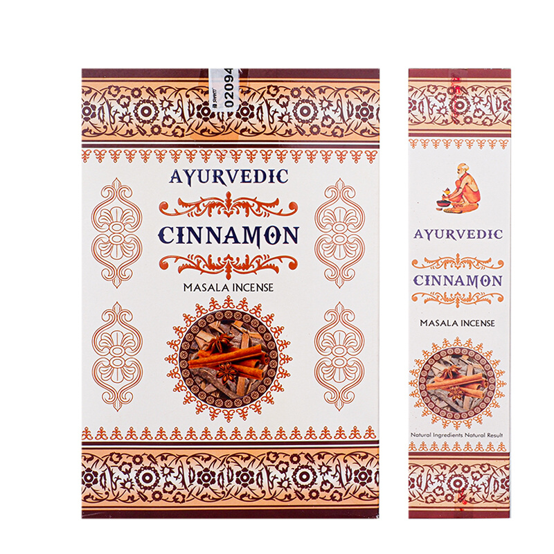 Ayurvedic Cinnamon scented sticks contain a unique blend of rare herbs, flowers, honey, resins and oils whose soothing aroma will take you beyond your dreams. Ayurvedic Cinnamon will touch your senses and leave you with a long-lasting feeling of well-being and relaxation.