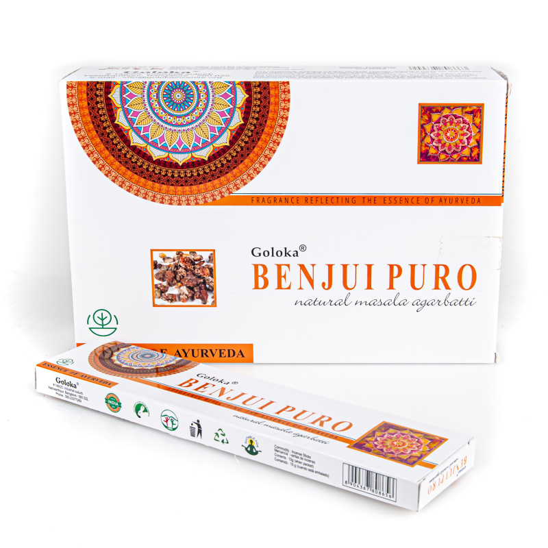 High quality Indian sticks on bamboo chips from the traditional manufacturer Goloka with the scent of benzoin resin.