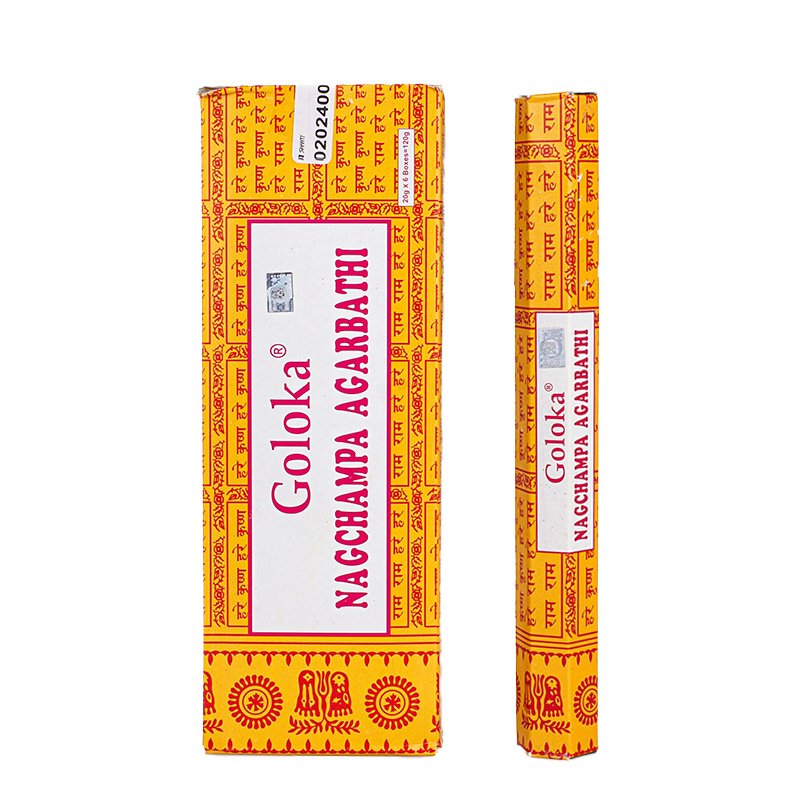 The distinctive, spicy scent of the famous Goloka Nag Champa scented sticks for moments of relaxation