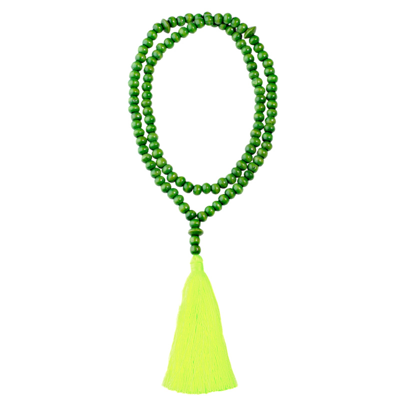 Traditional mala handcrafted on the exotic island of Bali from green wooden beads.