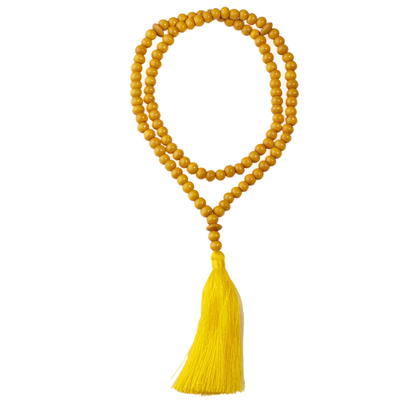 Traditional mala handcrafted on the exotic island of Bali from yellow wooden beads.