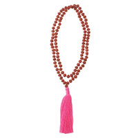 Traditional mala handcrafted on the exotic island of Bali made of Rudraksha seeds, adorned with a black tassel.